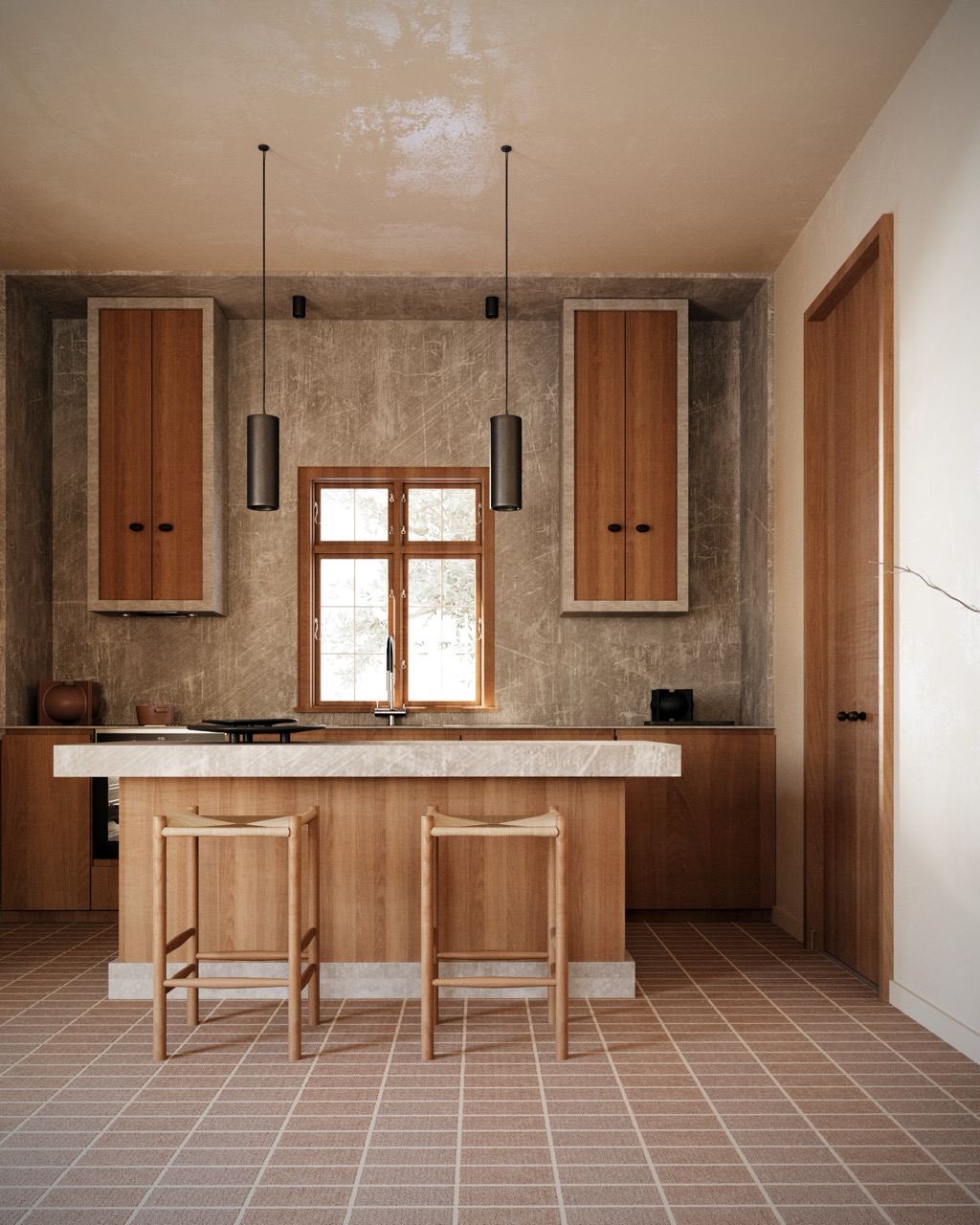 Developed in collaboration with the architectural studio K-S Project, under the direction of Konstantina Sygkyridi, the project reflects a clear and cohesive interior vision. Our studio contributed to both the architectural interior detailing and the high-quality visualizations that captured the tactile identity of the space.